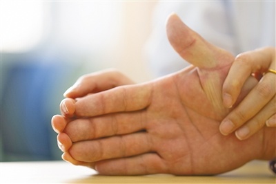 医生帮助患者进行手部康复训练。