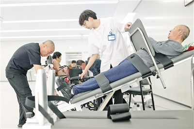 患者在康复器械区进行训练。